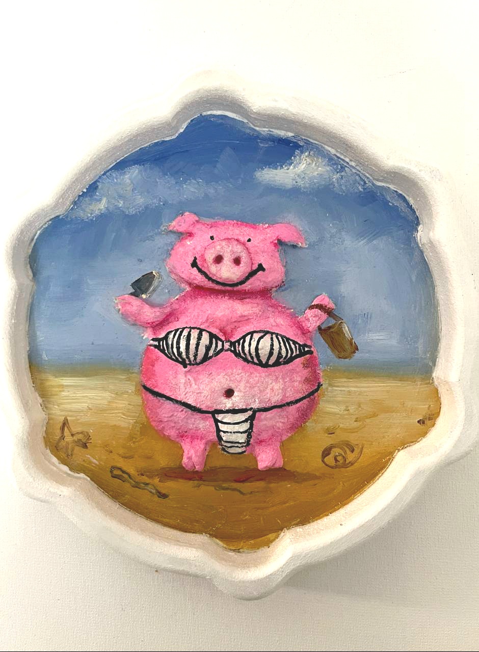 دیوارکوب چوبی فانتزی طرح برجسته خوک شناگر