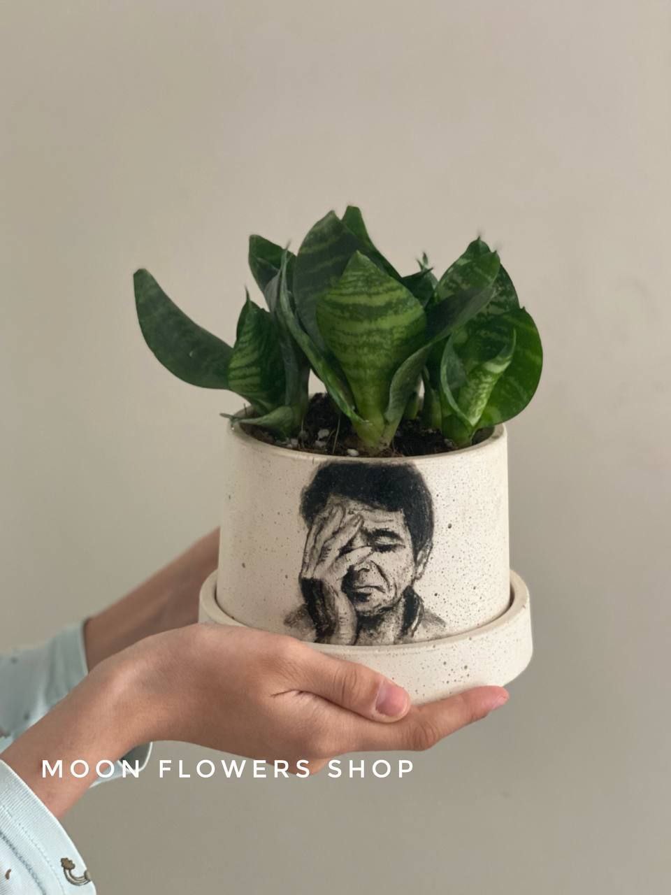 گلدان بتنی با نقاشی دستی پرتره استاد شجریان سایز 8