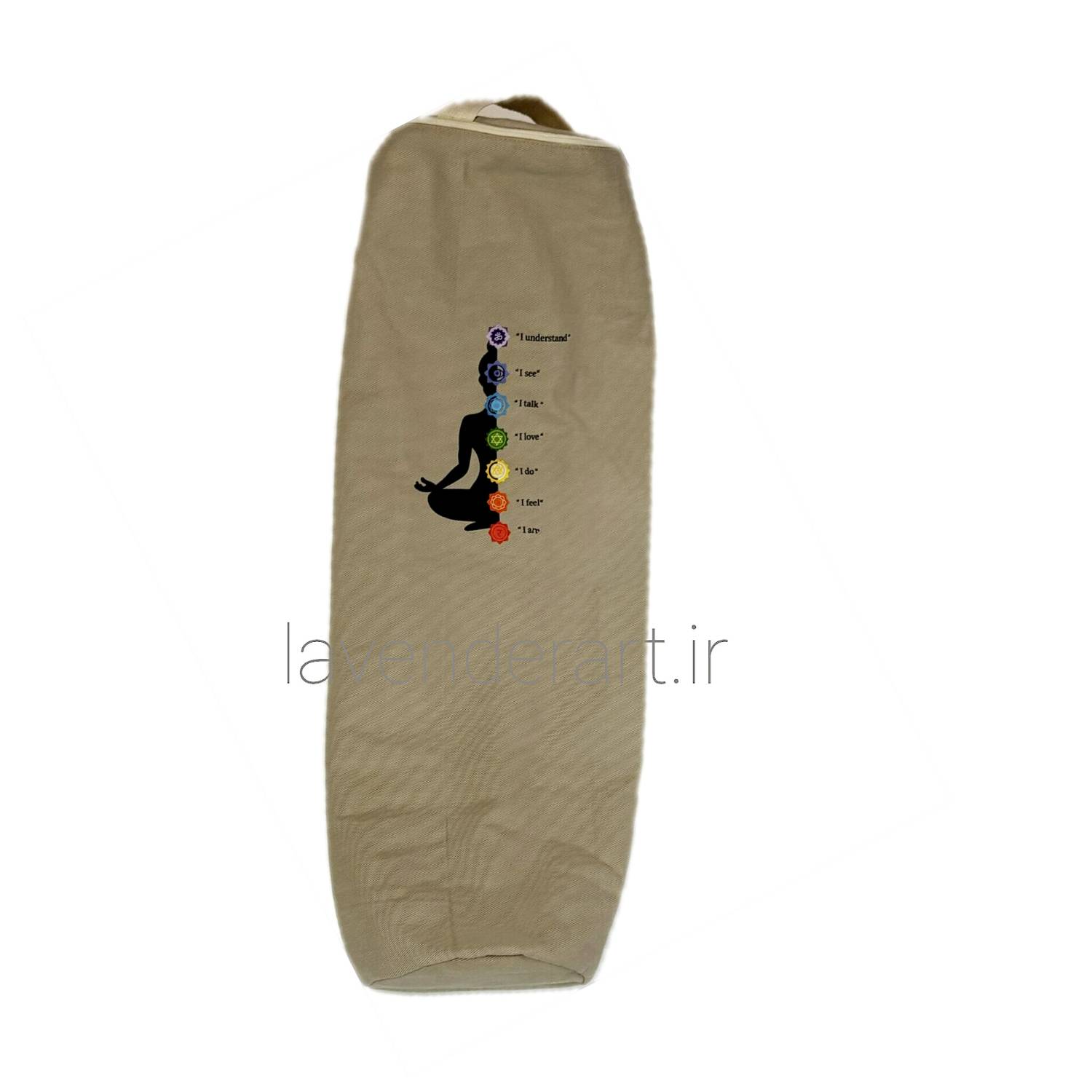 کیف رولی مت یوگا جنس کتان کرم طرح چاکرا