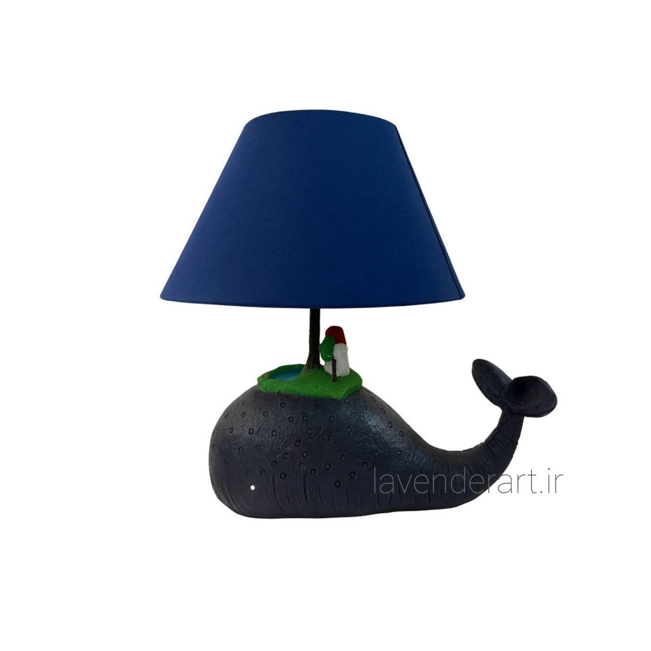 آباژور دست ساز نهنگ، اثری خیال انگیز و شاعرانه که با جزییات ظریف از خمیر پاپیه ماشه ساخته شده است.