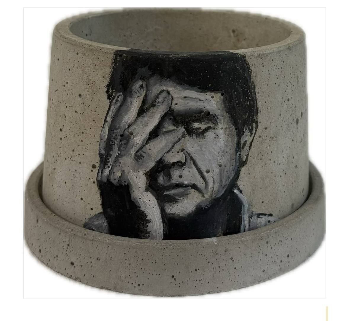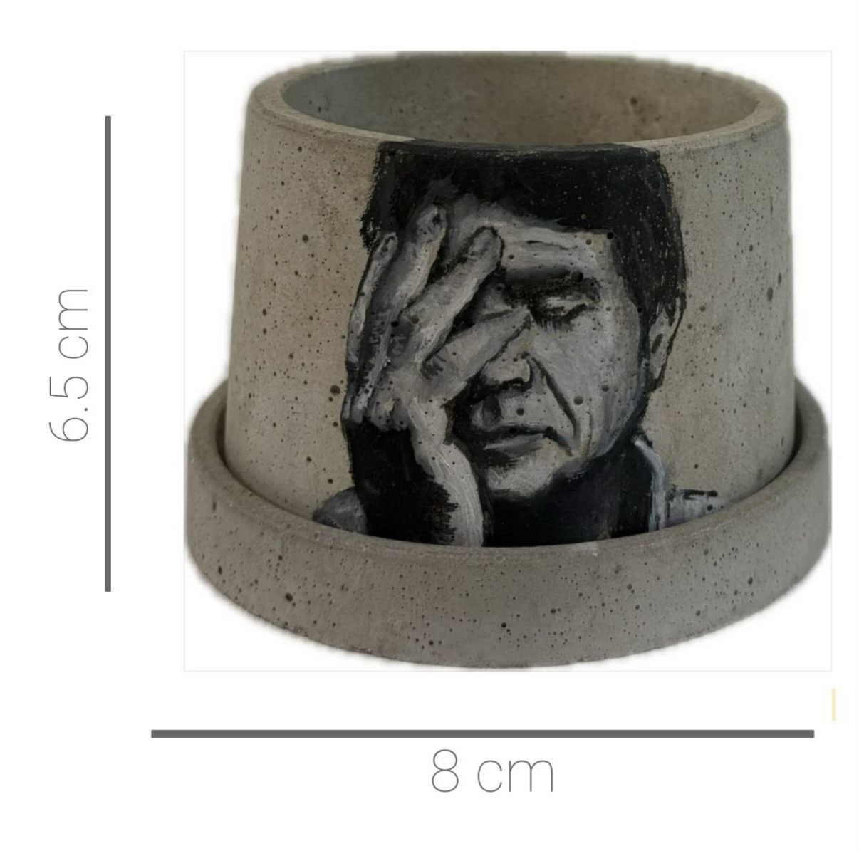 گلدان بتنی با نقاشی دستی پرتره استاد شجریان سایز 8