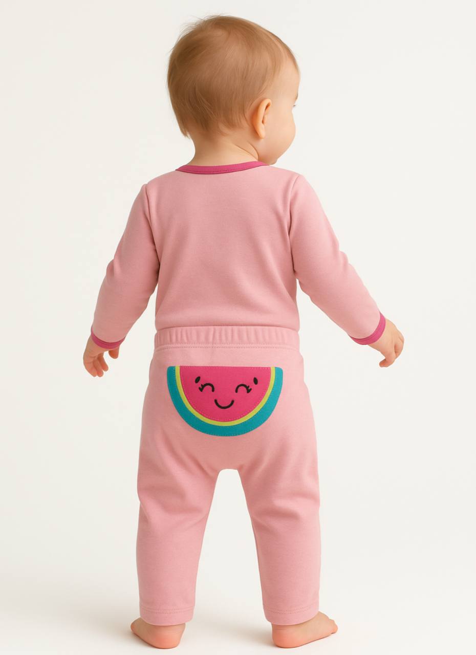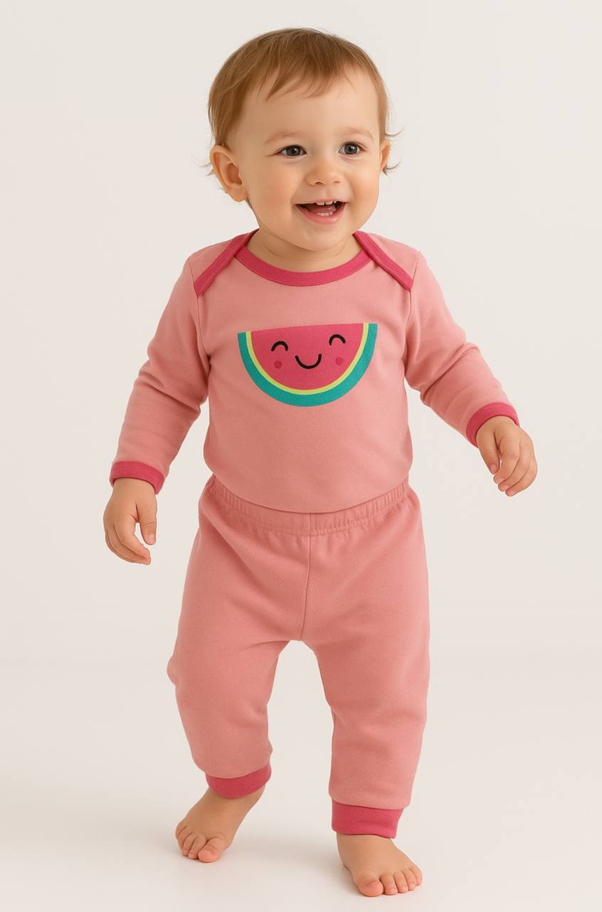 این ست بامزه و راحت، شامل یک بادی آستینبلند و یک شلوار نرم و کشسان است که با طرح هندوانهی خندان روی بادی، ظاهر آن را کاملاً یلدایی و جذاب کرده است. جنس لطیف و مناسب پوست حساس نوزاد، این ست را به گزینهای عالی برای استفادهی طولانیمدت تبدیل میکند.