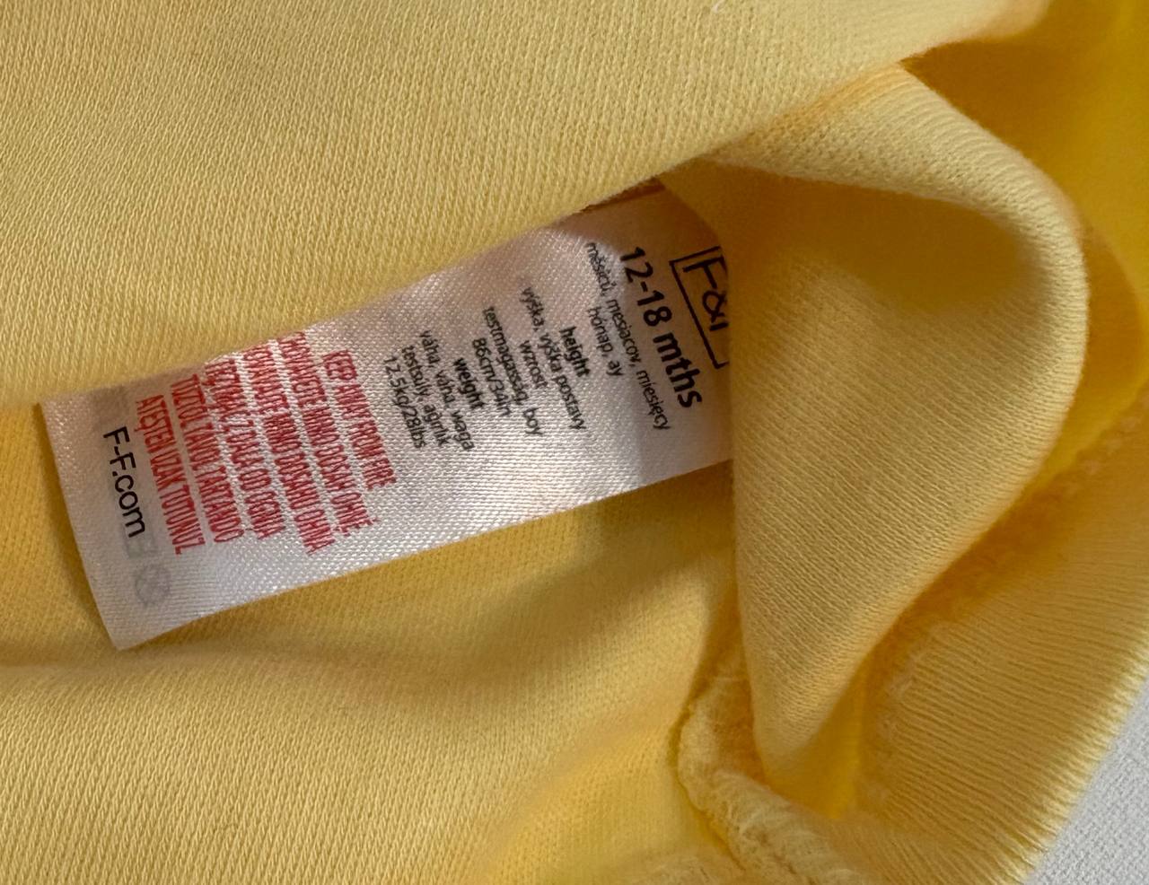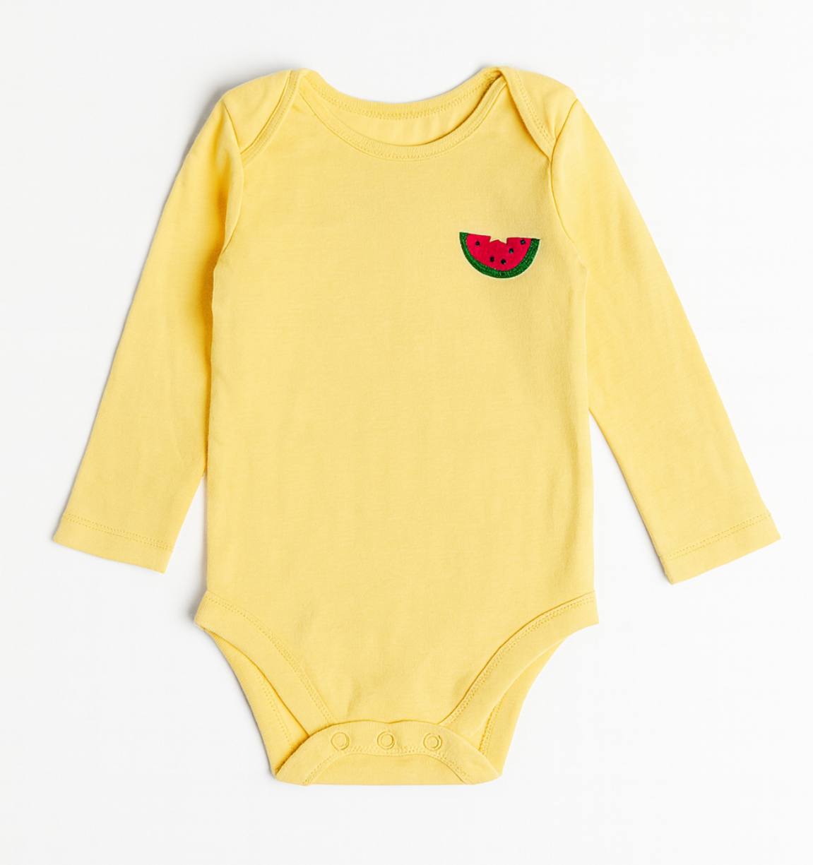 بادی نوزاد برند اف اند اف طرح هندوانه زرد رنگ مناسب کودک 12 تا 18 ماه