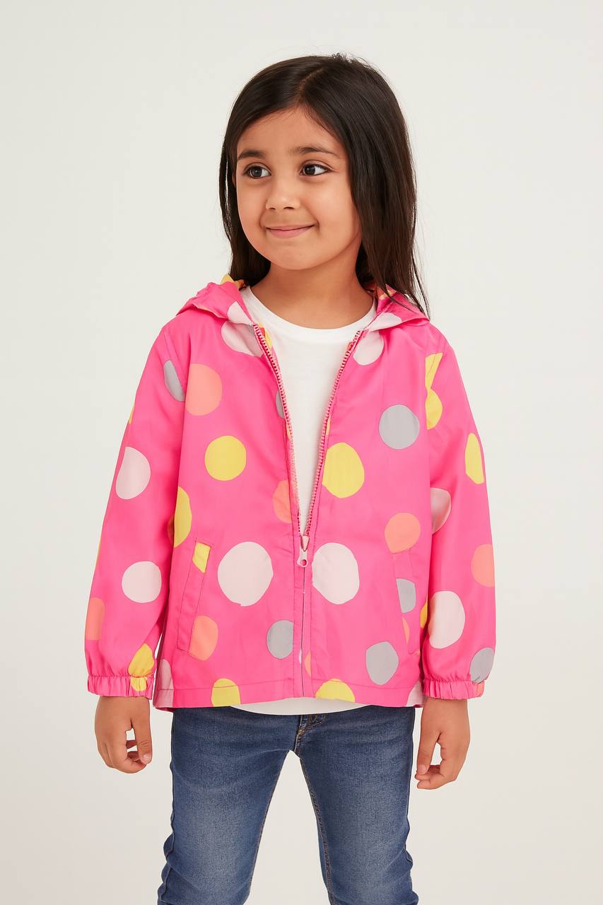 این بارونی دخترانه با رنگ صورتی شاد و طرح خالخالهای رنگی، یک انتخاب ایدهآل برای روزهای بارانی است. جنس سبک و شاور رزیستنت (مقاوم در برابر بارش سبک) بوده و راحتی و محافظت را همزمان فراهم میکند.