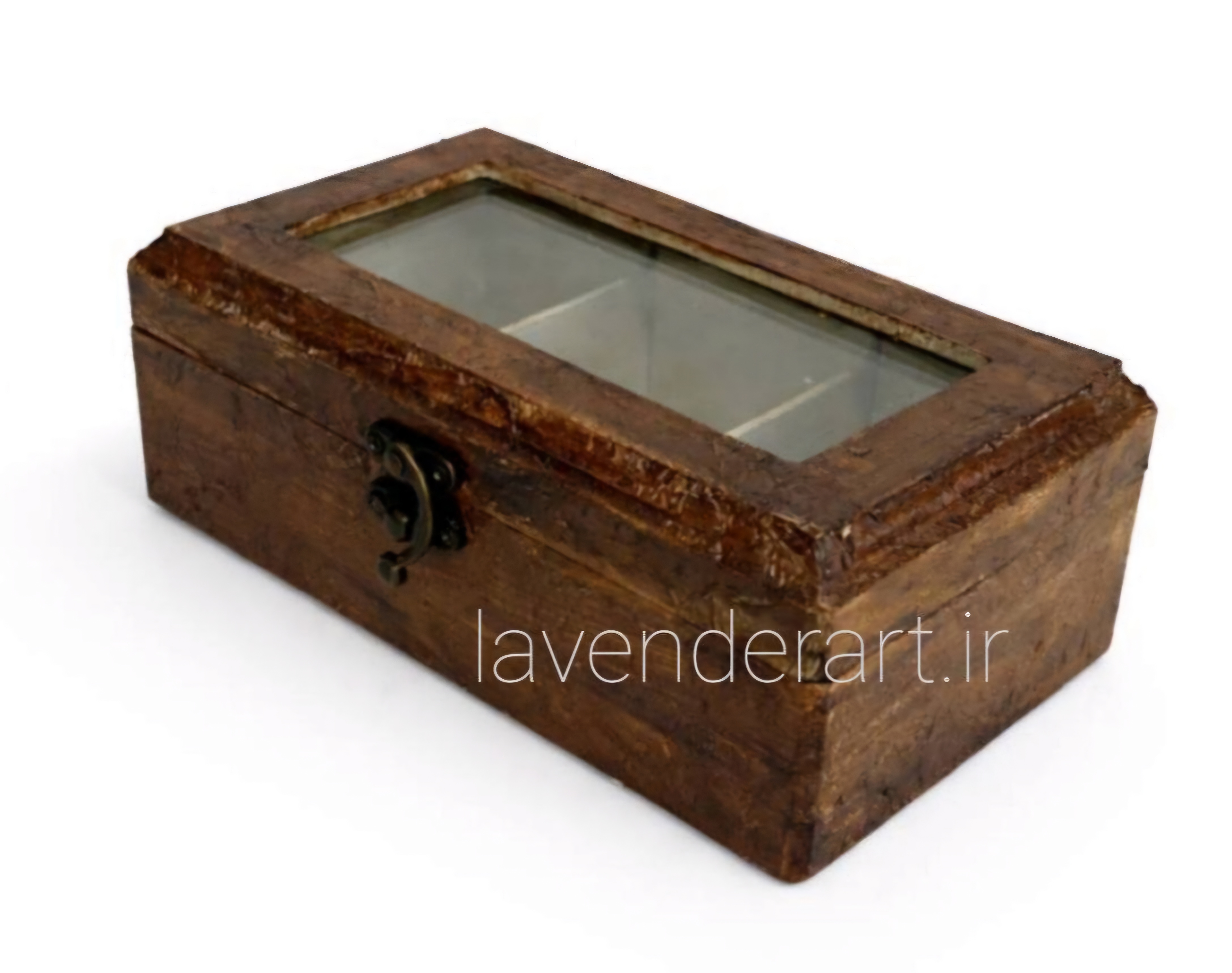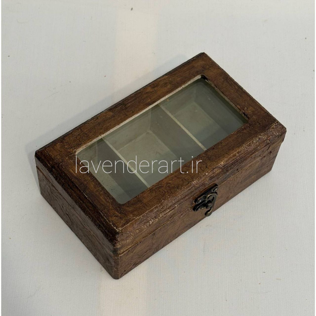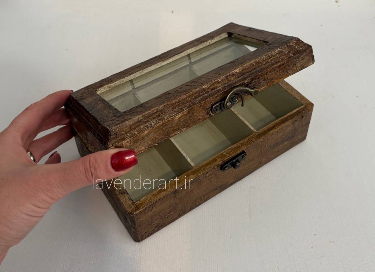 جعبه تیبگ سه خانه طرح چرم قهوه ای با در طلقی