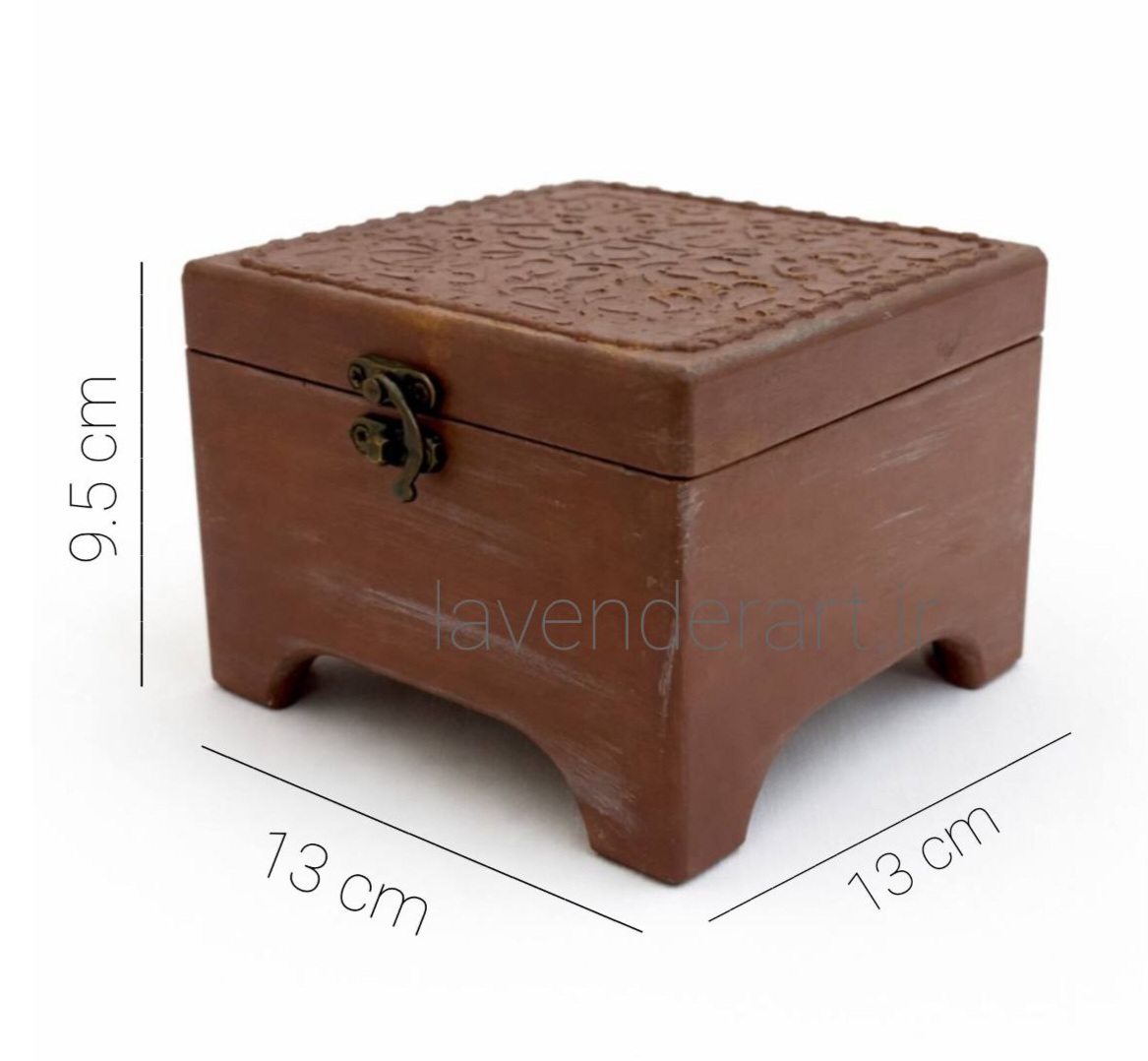 جعبه چوبی پایه دار مربع طرح منبت