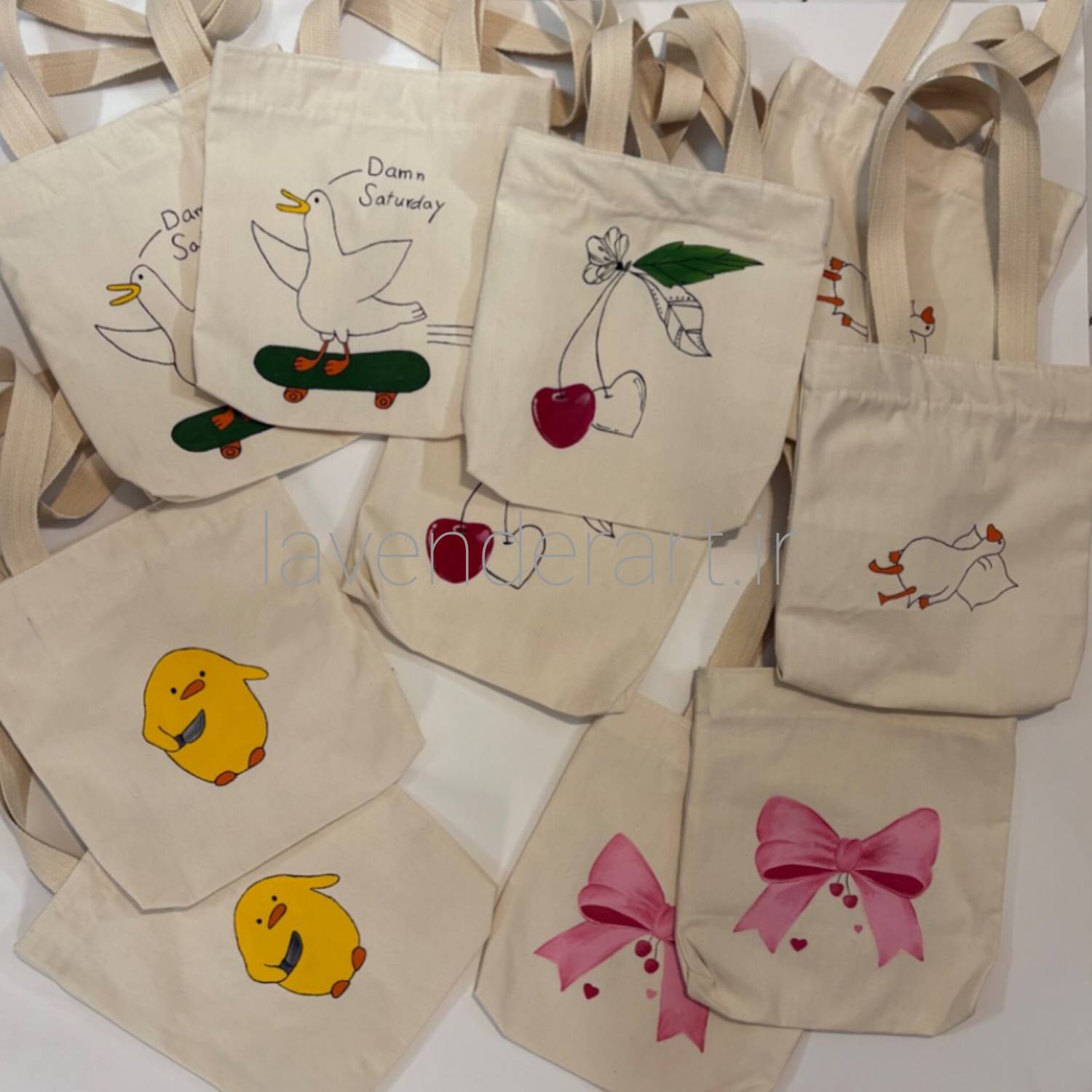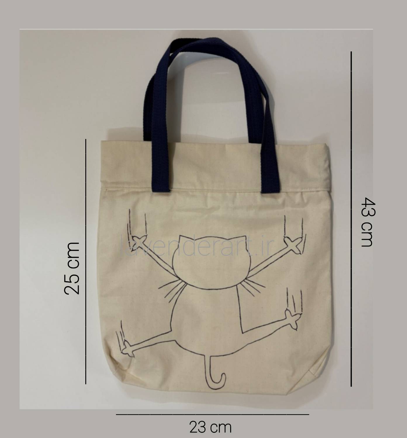 توت بگ کتان با نقاشی پارچه طرح گربه مینیمال