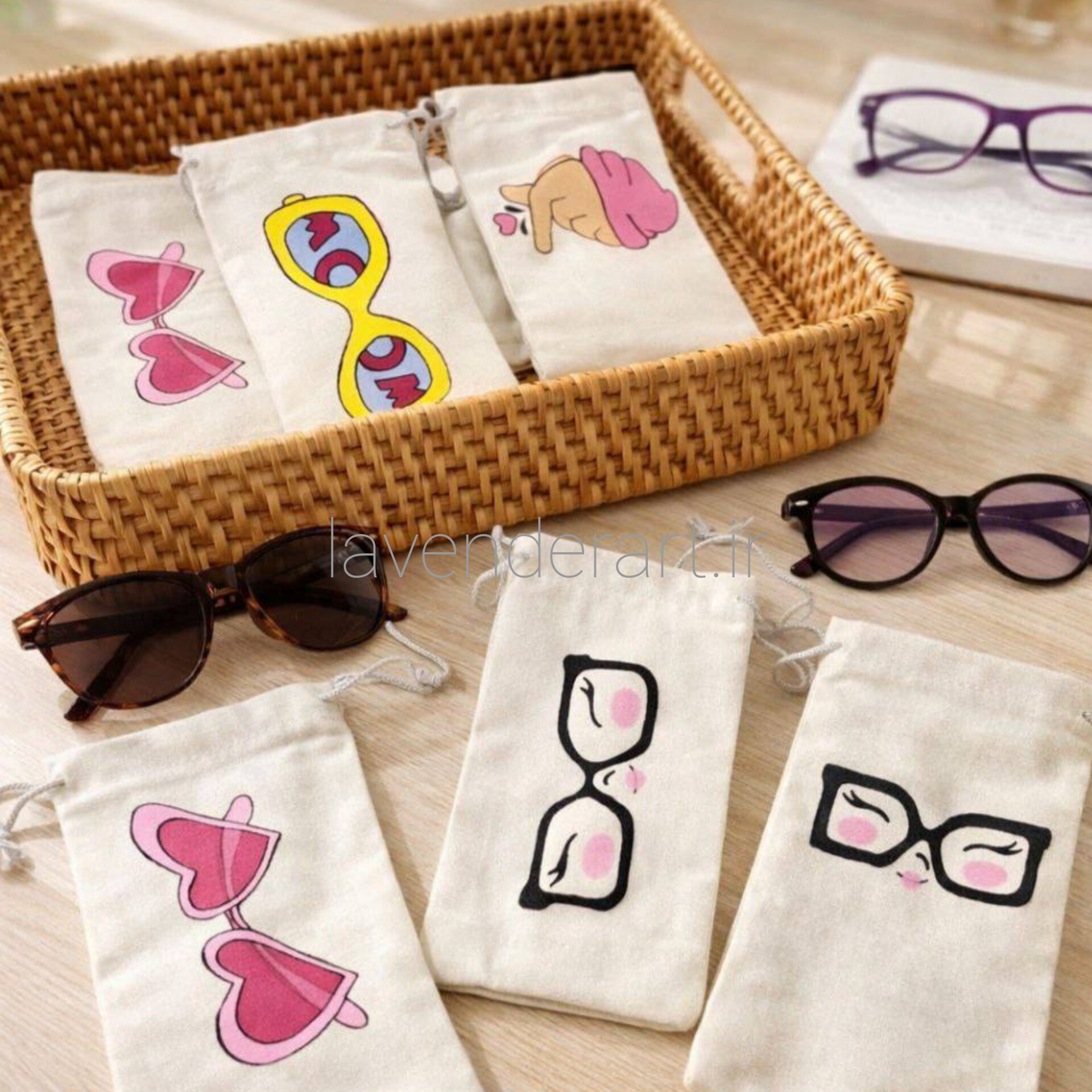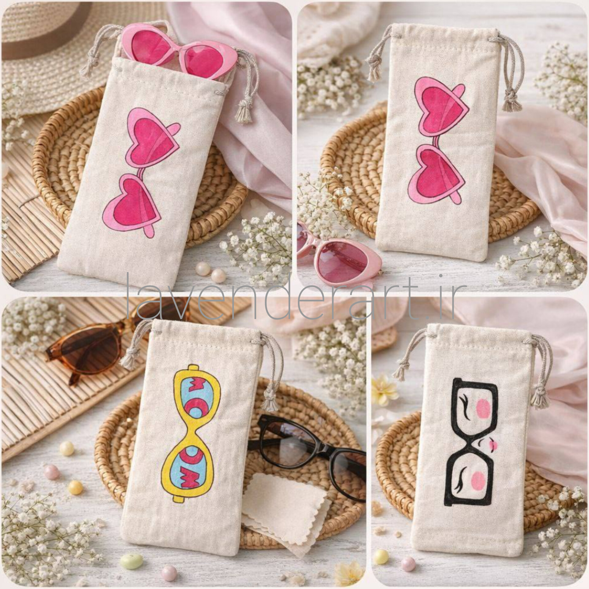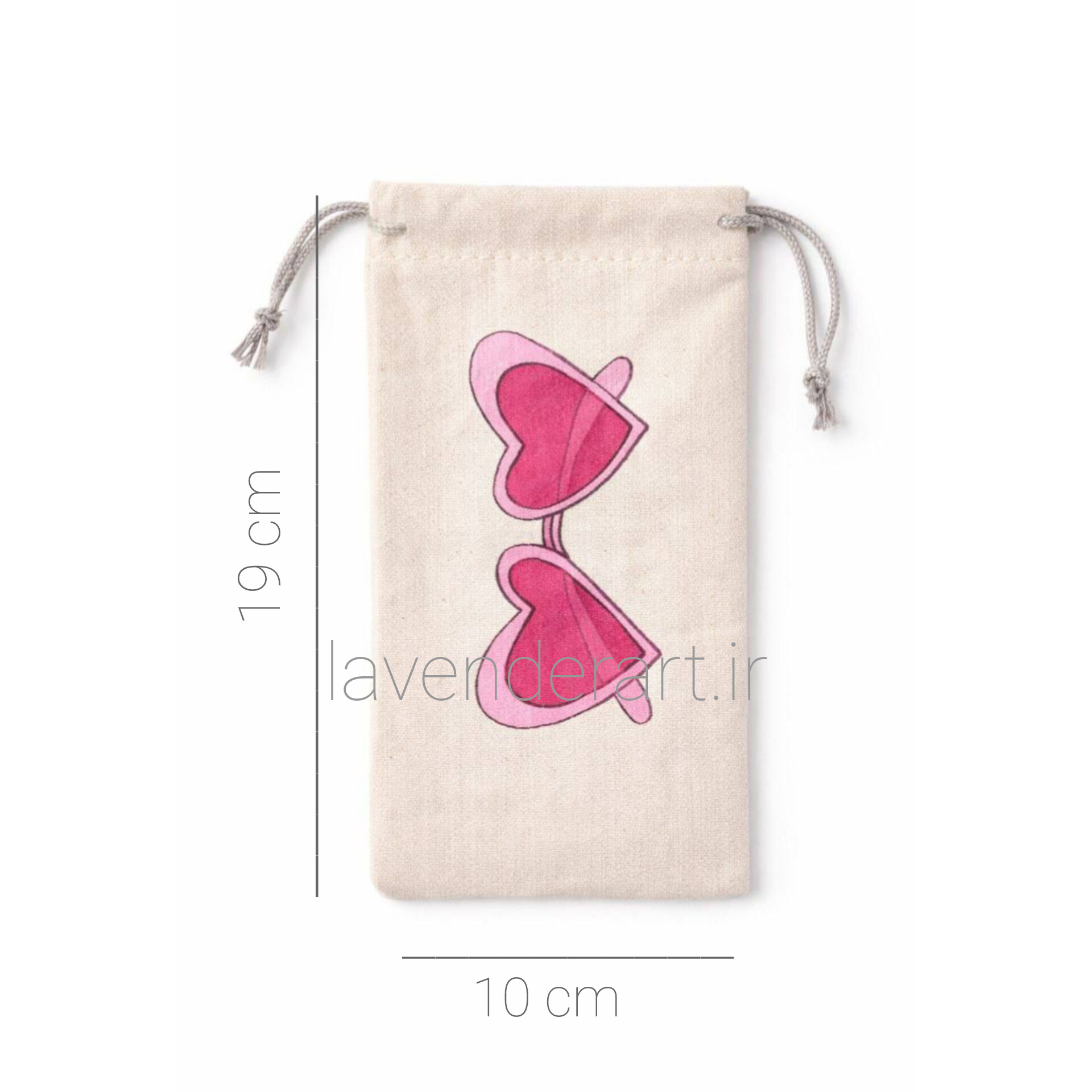 جا عینکی پارچه ای فانتزی با نقاشی عینک صورتی قلبی شکل