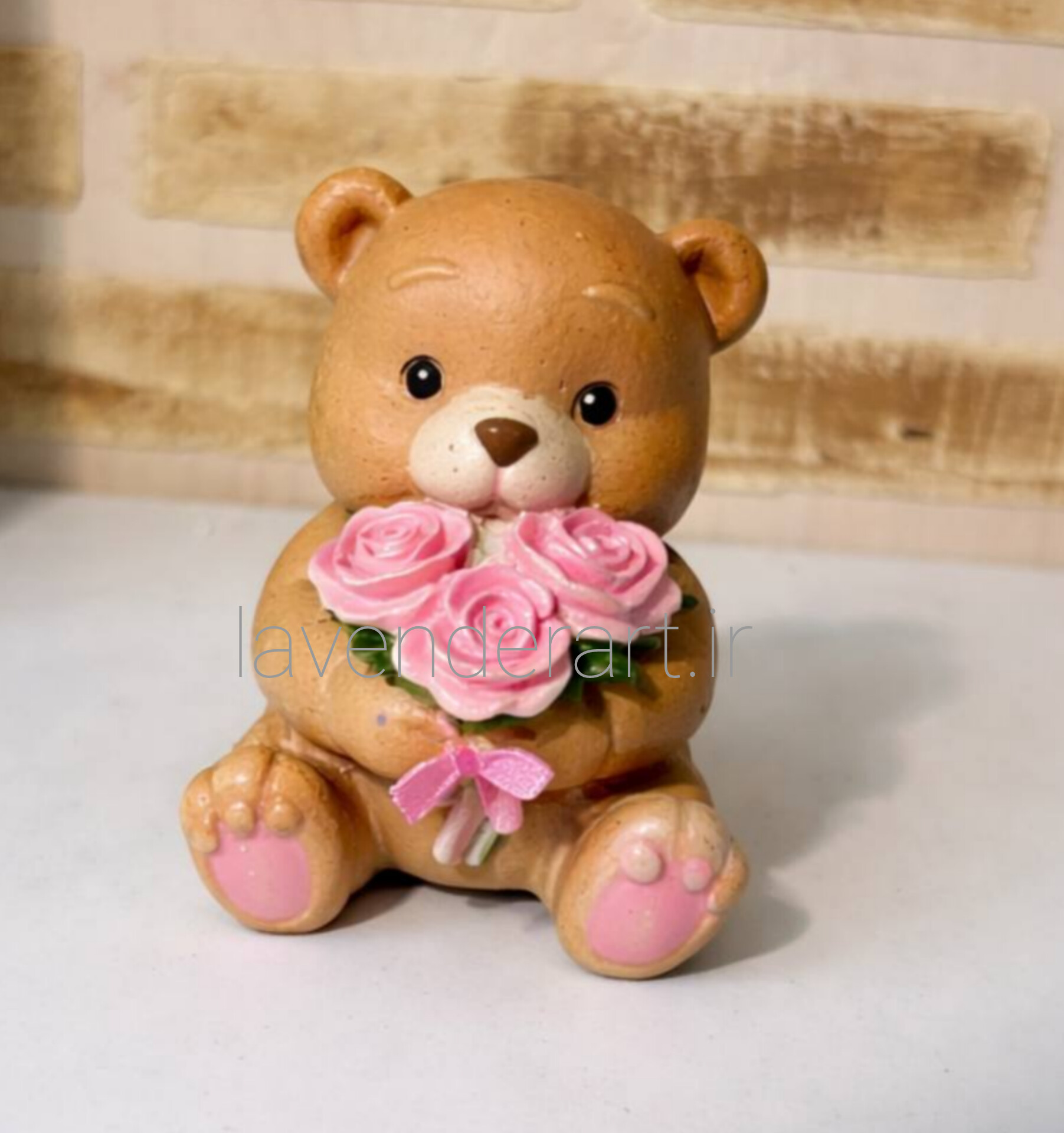مجسمه پلی استر خام خرس ولنتاین با یه بغل گل 9 سانتی متر