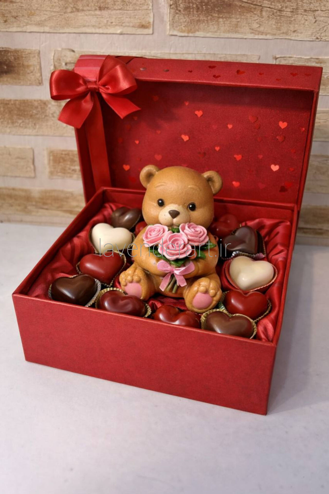 مجسمه پلی استر خام خرس ولنتاین با یه بغل گل