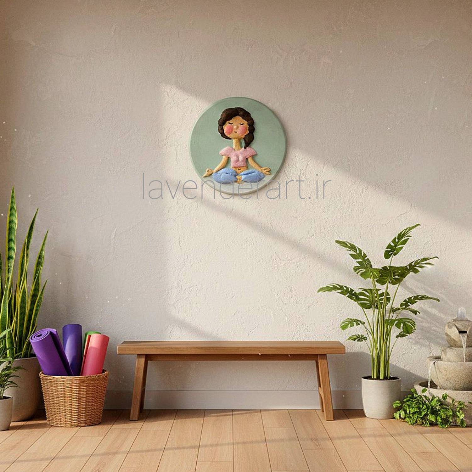 با این تابلوی برجسته و سه بعدی آرامش را به خانه یا محل کارتان هدیه دهید. درون قاب، فیگور زنی در حال مدیتیشن حال و هوای گرم و صمیمی ایجاد می کند. در قسمت برجسته تابلو از خمیر هواخشک استفاده شده و نقاشی روی آن با رنگ و روغن است.