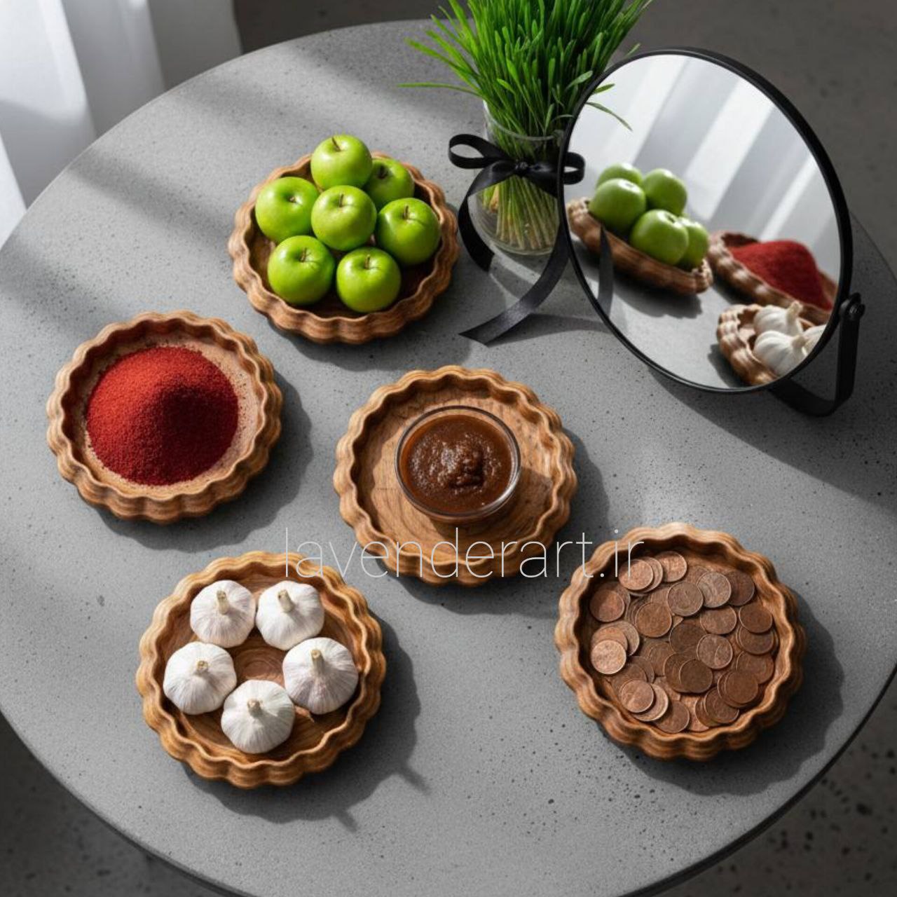 این ظرف سنگ مصنوعی خام، با طراحی ساده و نقاشی پاپیون، انتخابی شیک و ماندگار برای چیدمان سفره هفت سین نوروز.