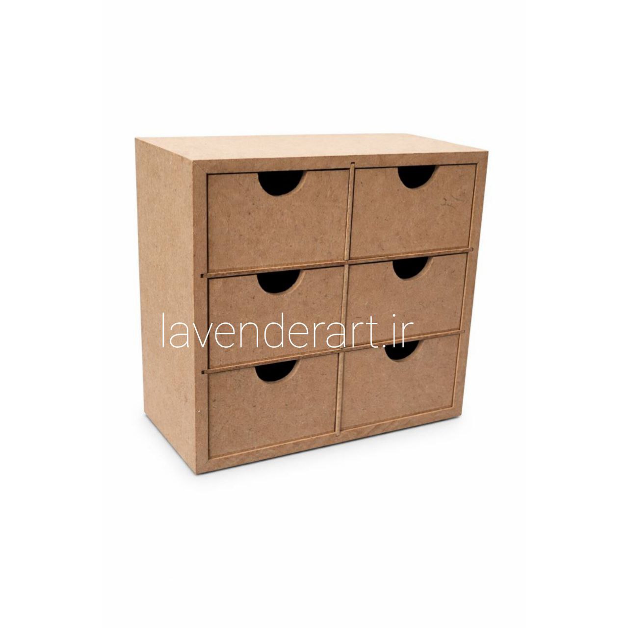 مینی دراور چوبی خام رومیزی شش کشویی زیورآلات