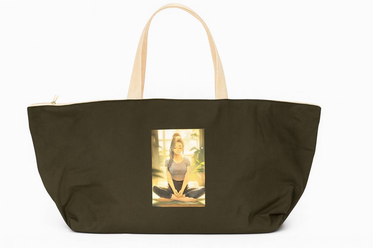 کیف مت یوگا جنس کتان سبز ارتشی با طرح آرامش