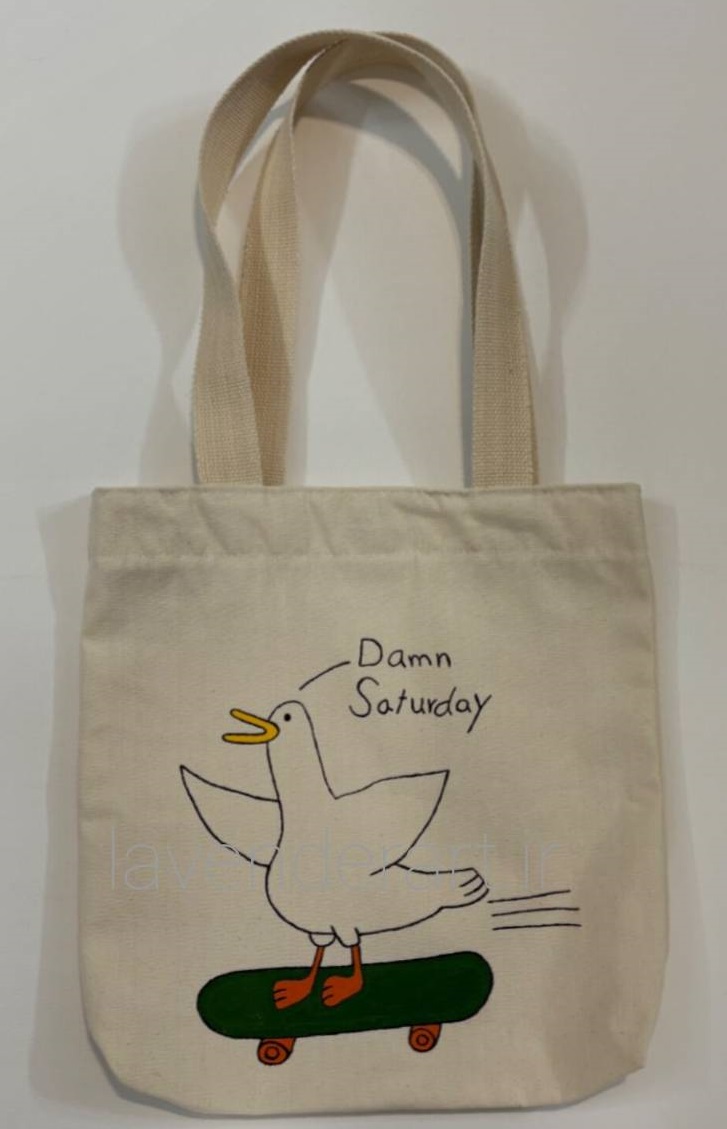 توت بگ کتان با نقاشی پارچه طرح اردک سوار بر اسکیت