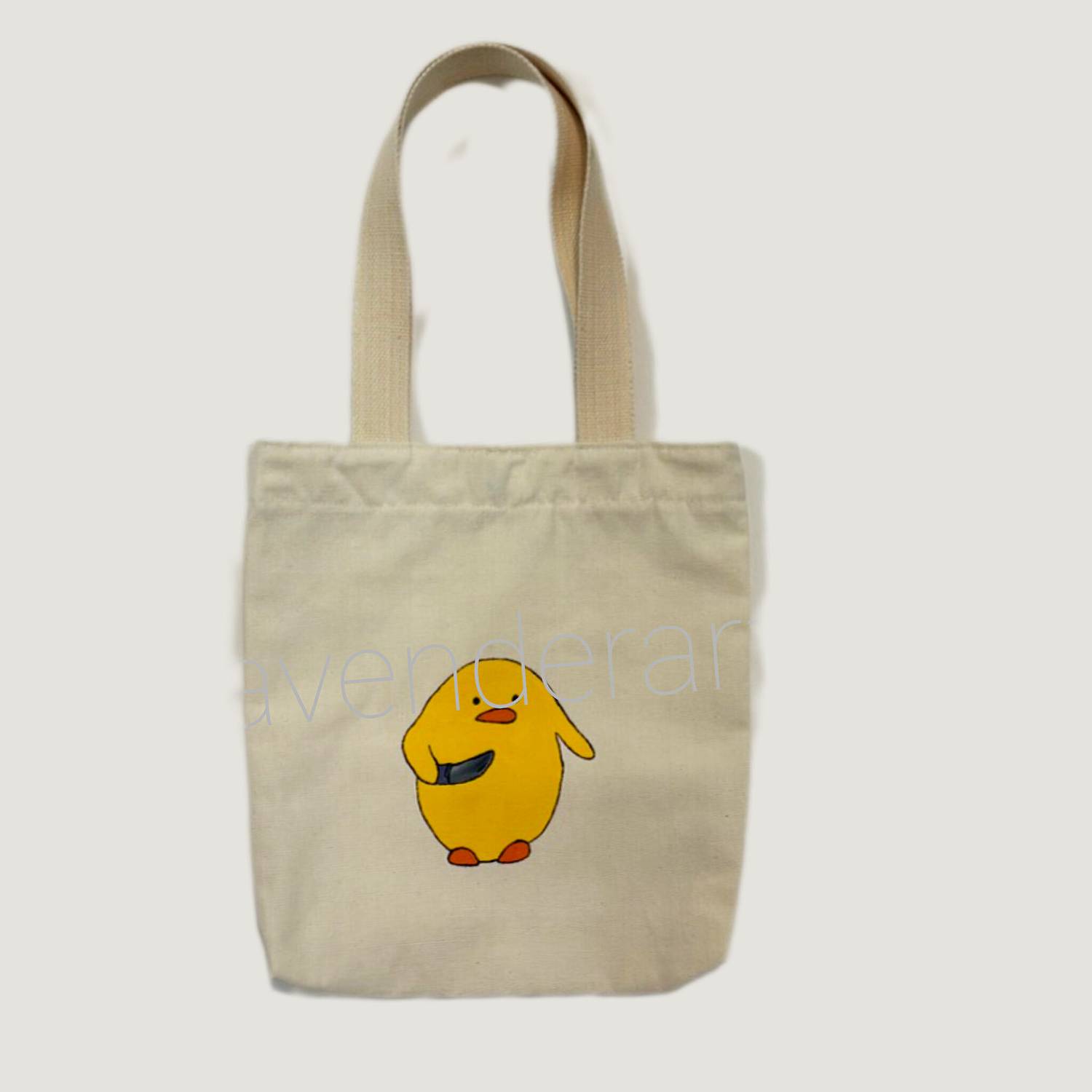 توت بگ کتان با نقاشی پارچه طرح اردک زرد