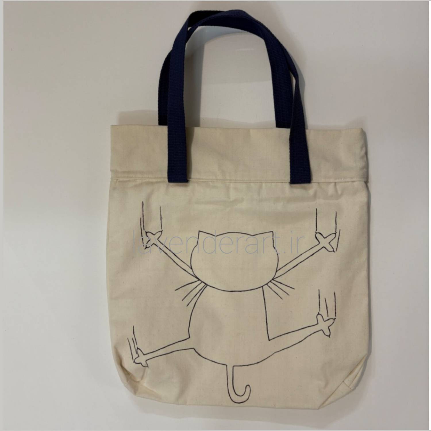 توت بگ کتان با نقاشی پارچه طرح گربه مینیمال
