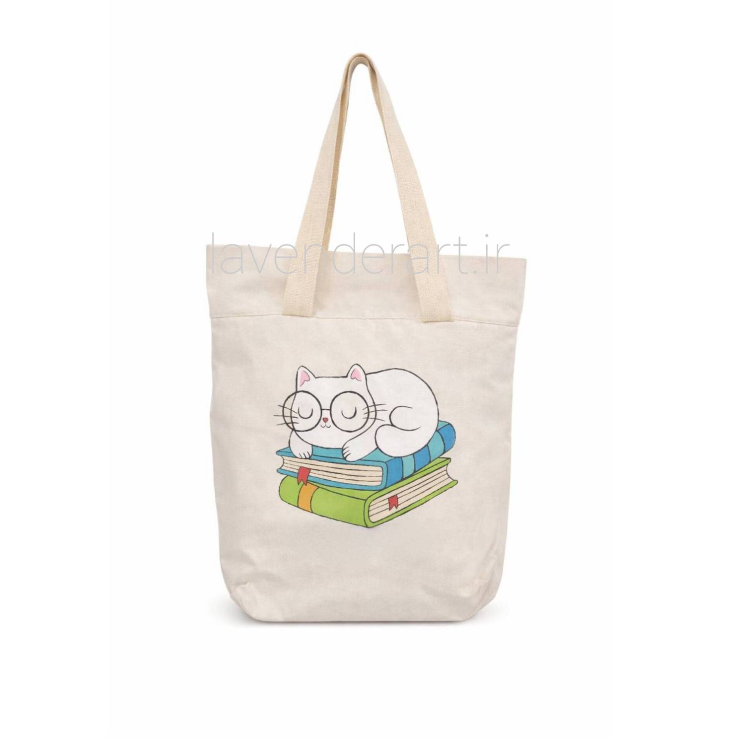 توت بگ کتان با نقاشی پارچه طرح پیشی کتاب دوست