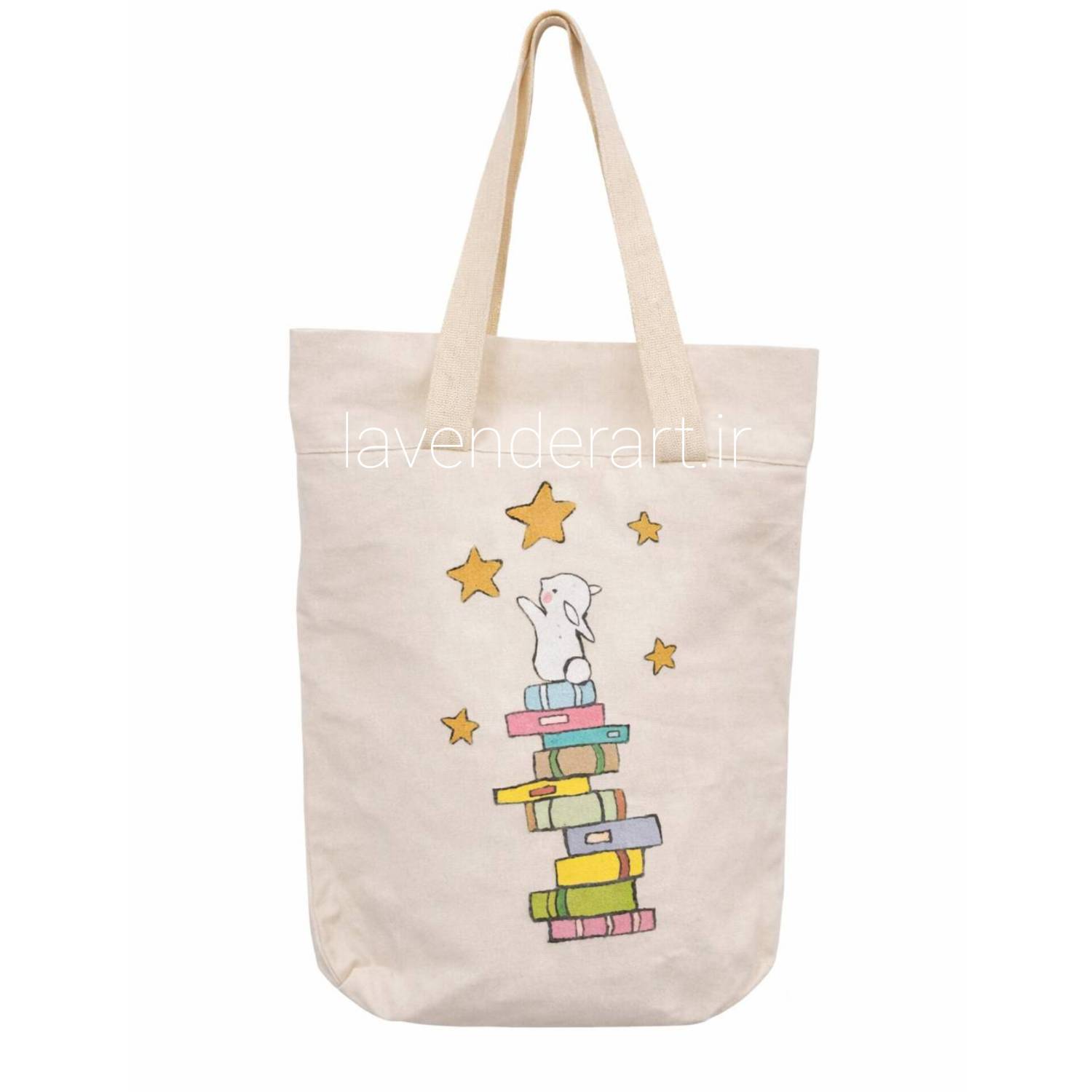 توت بگ کتان با نقاشی پارچه طرح خرگوش کتابخوان